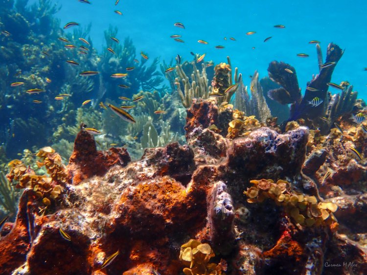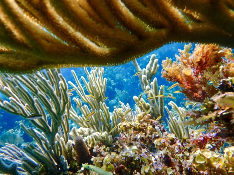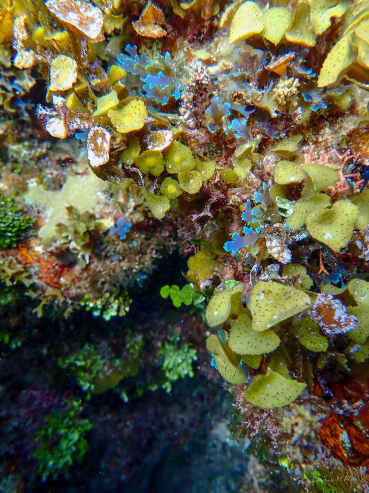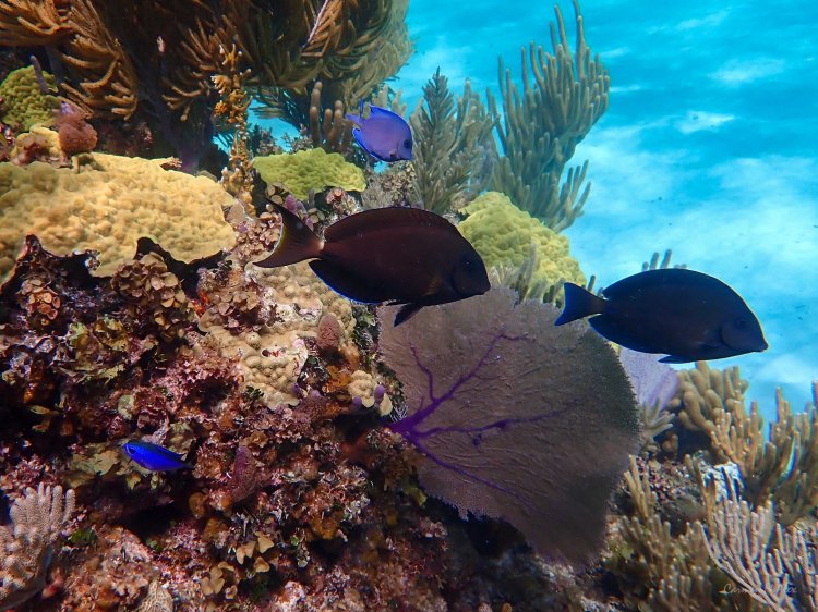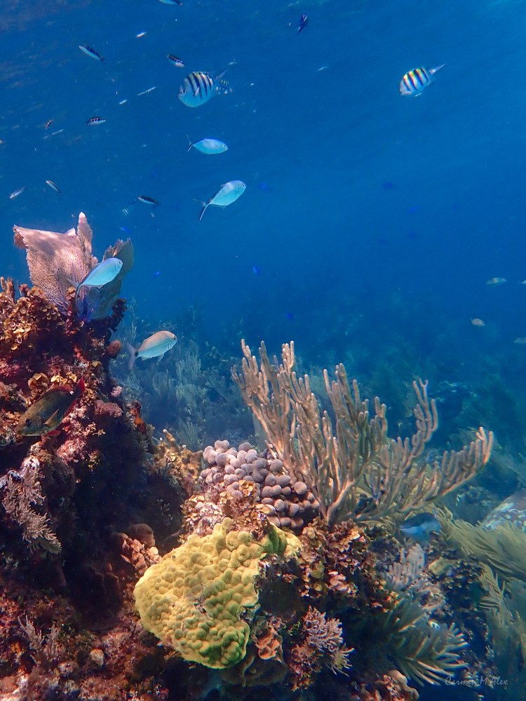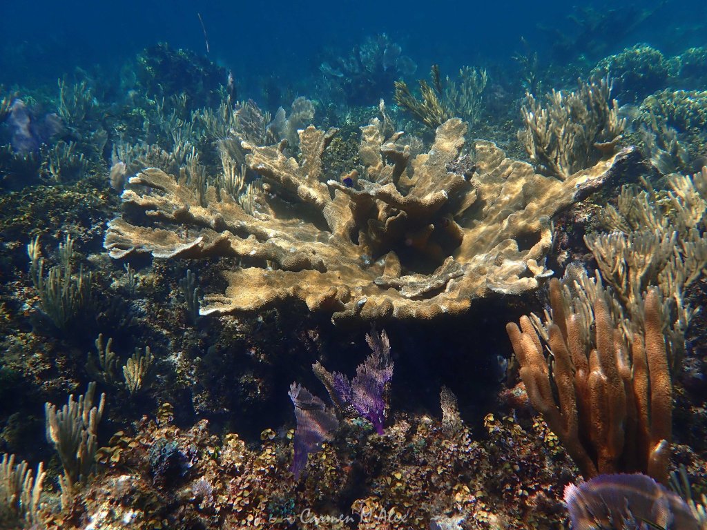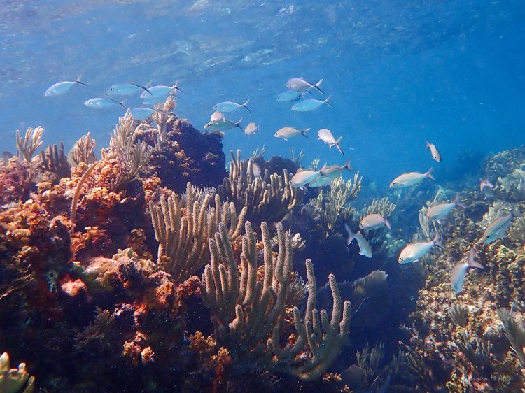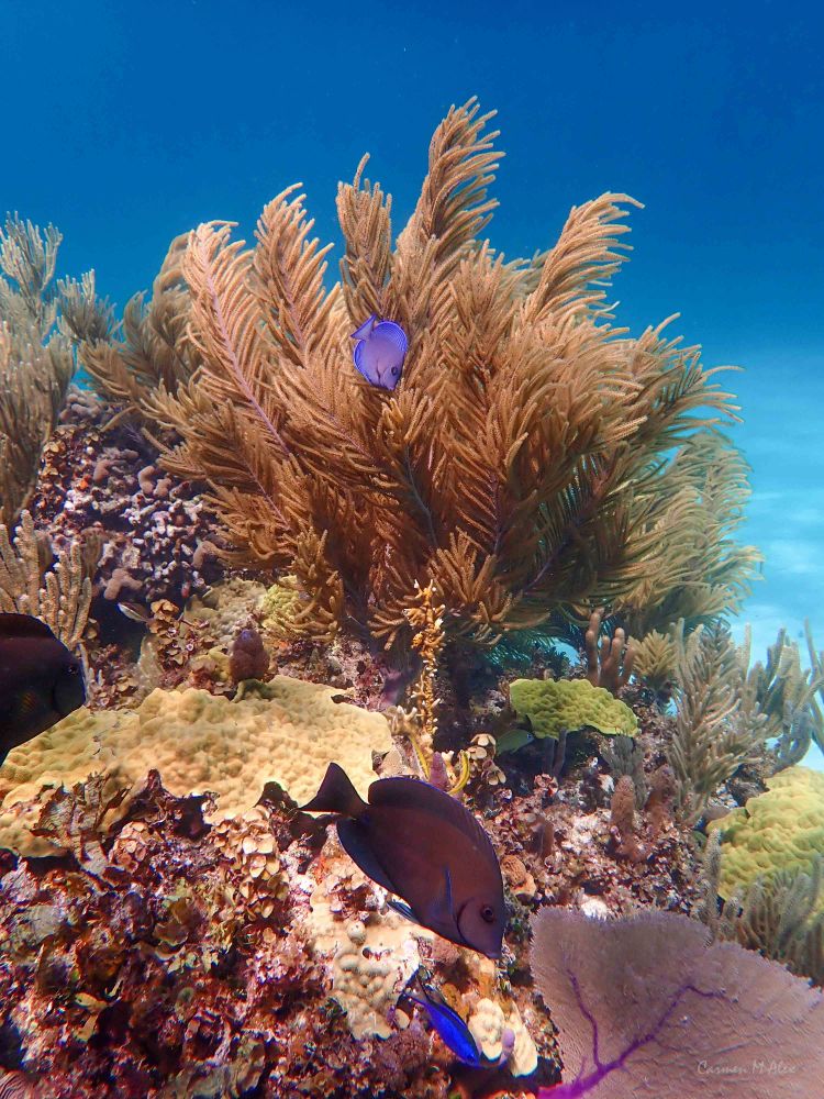Fowl Cay South consists of a triplet of patch reefs. Most hard corals have disappeared but the area is lush with soft coral, octocoral, seas whips, and sea fans. Parrotfish, Sergeant Majors, Blue Tang, Grunts, Snappers, Wrasse, and Damsels are among the most common reef fish.
