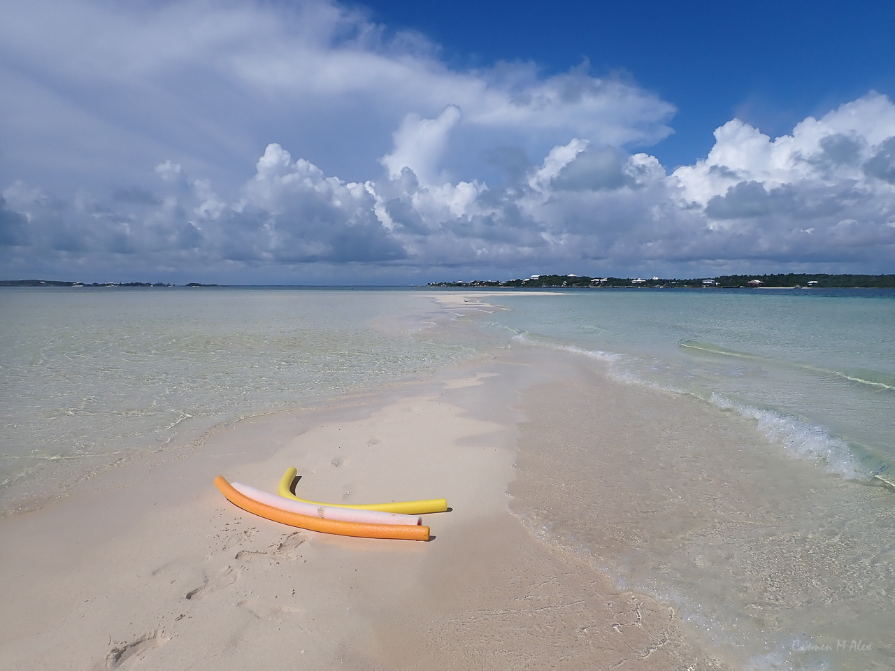 I grab three swim noodles and head to shore, as well. Sara, (who lives on the other boat and I attempt some noodling exercises. It’s impossible to find water that’s deep enough to do all of it but we go through a few.