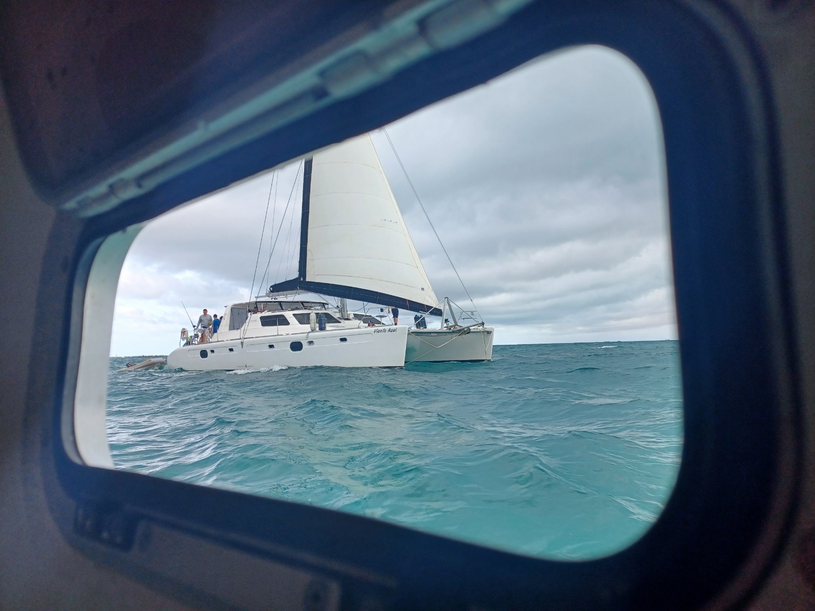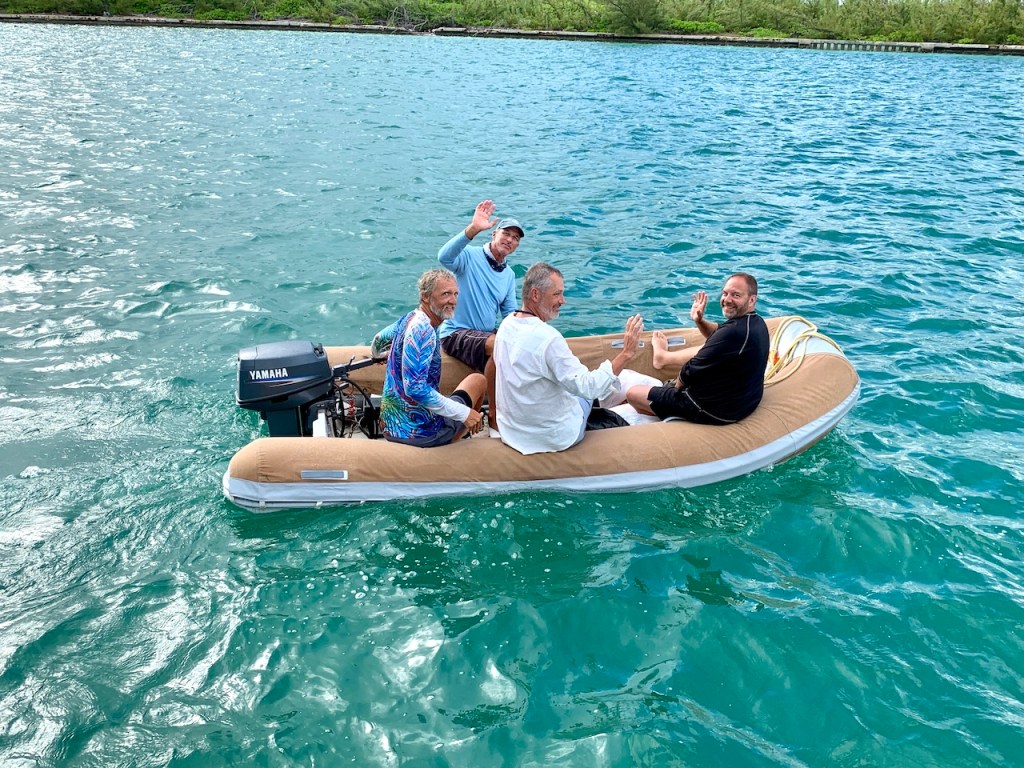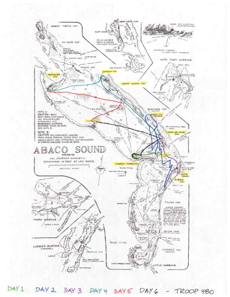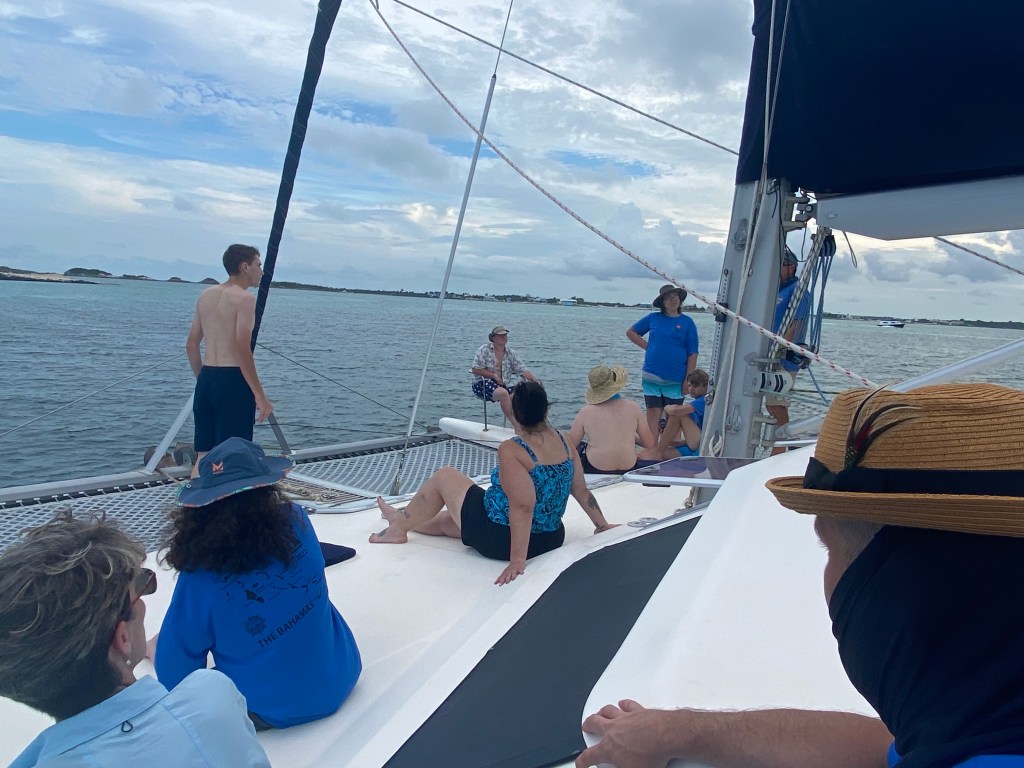 I greet my troop and we start walking, single file, toward Los Vientos. We sort out shoes, water bottles, sunscreen, snacks, then it’s luggage in the bunks and we all congregate topsides. I do the usual intro and safety briefings and we motor out of Marsh Harbour.
