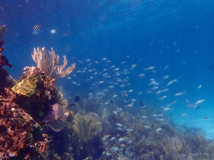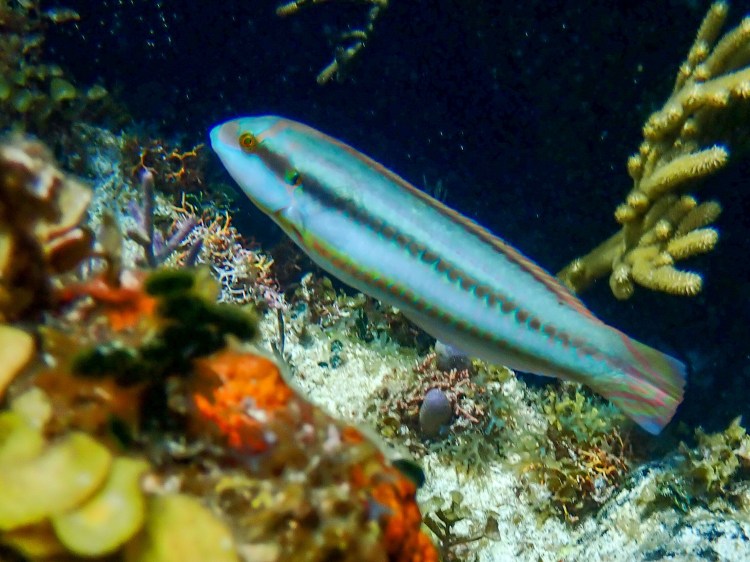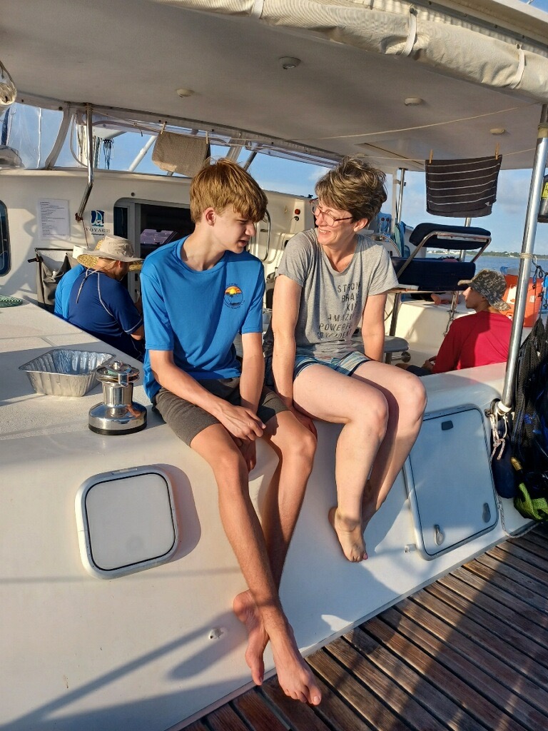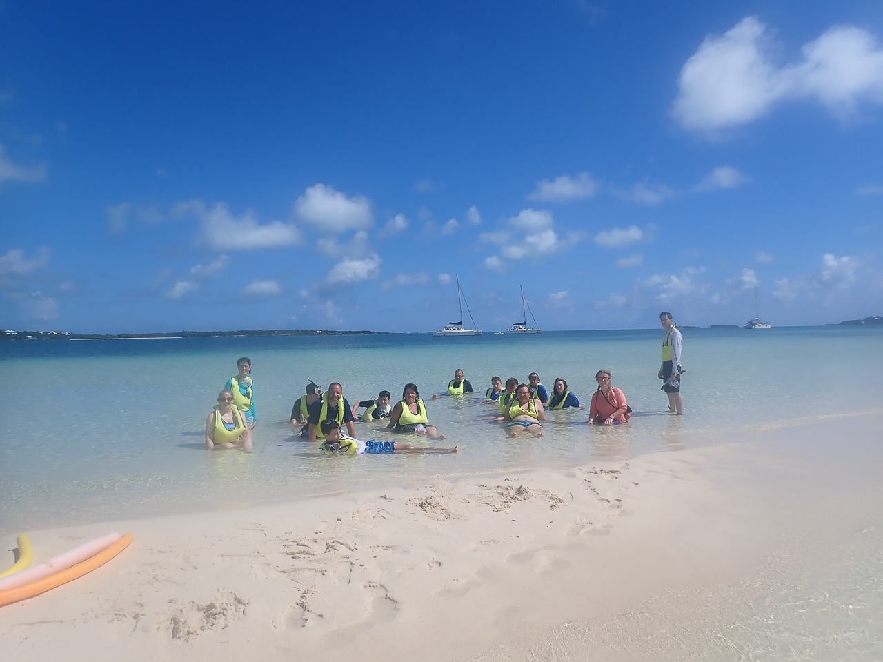 I greet my troop and we start walking, single file, toward Los Vientos. We sort out shoes, water bottles, sunscreen, snacks, then it’s luggage in the bunks and we all congregate topsides. I do the usual intro and safety briefings and we motor out of Marsh Harbour.