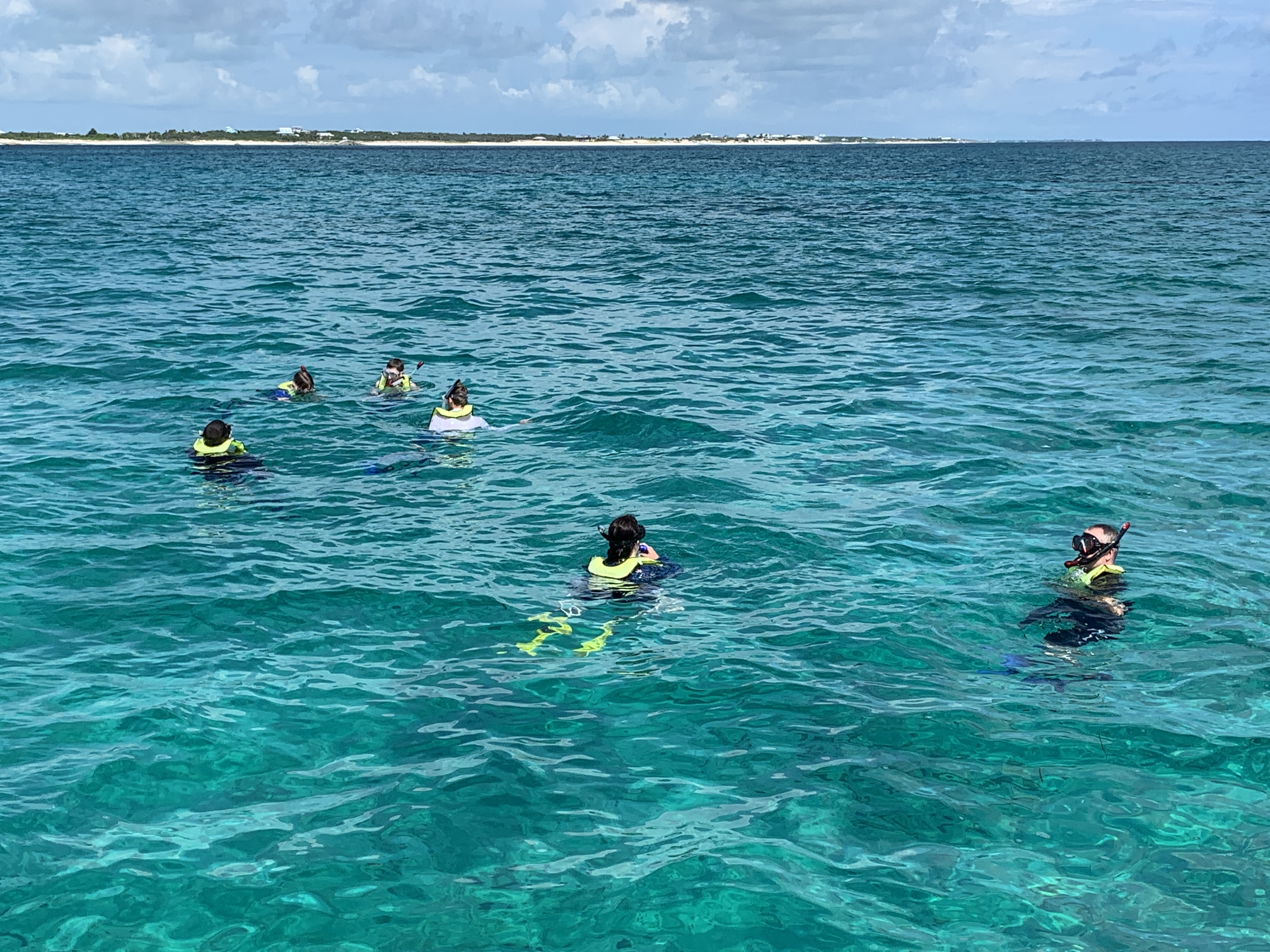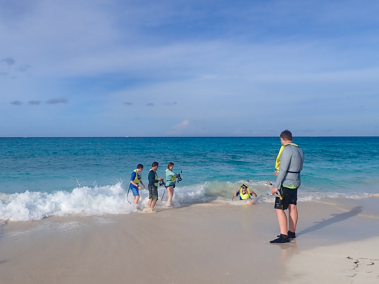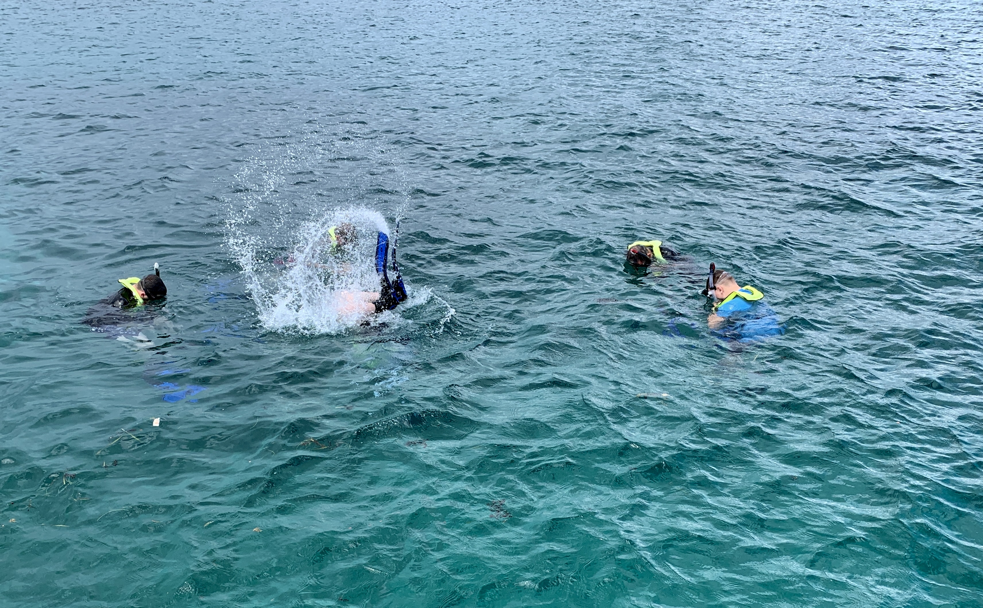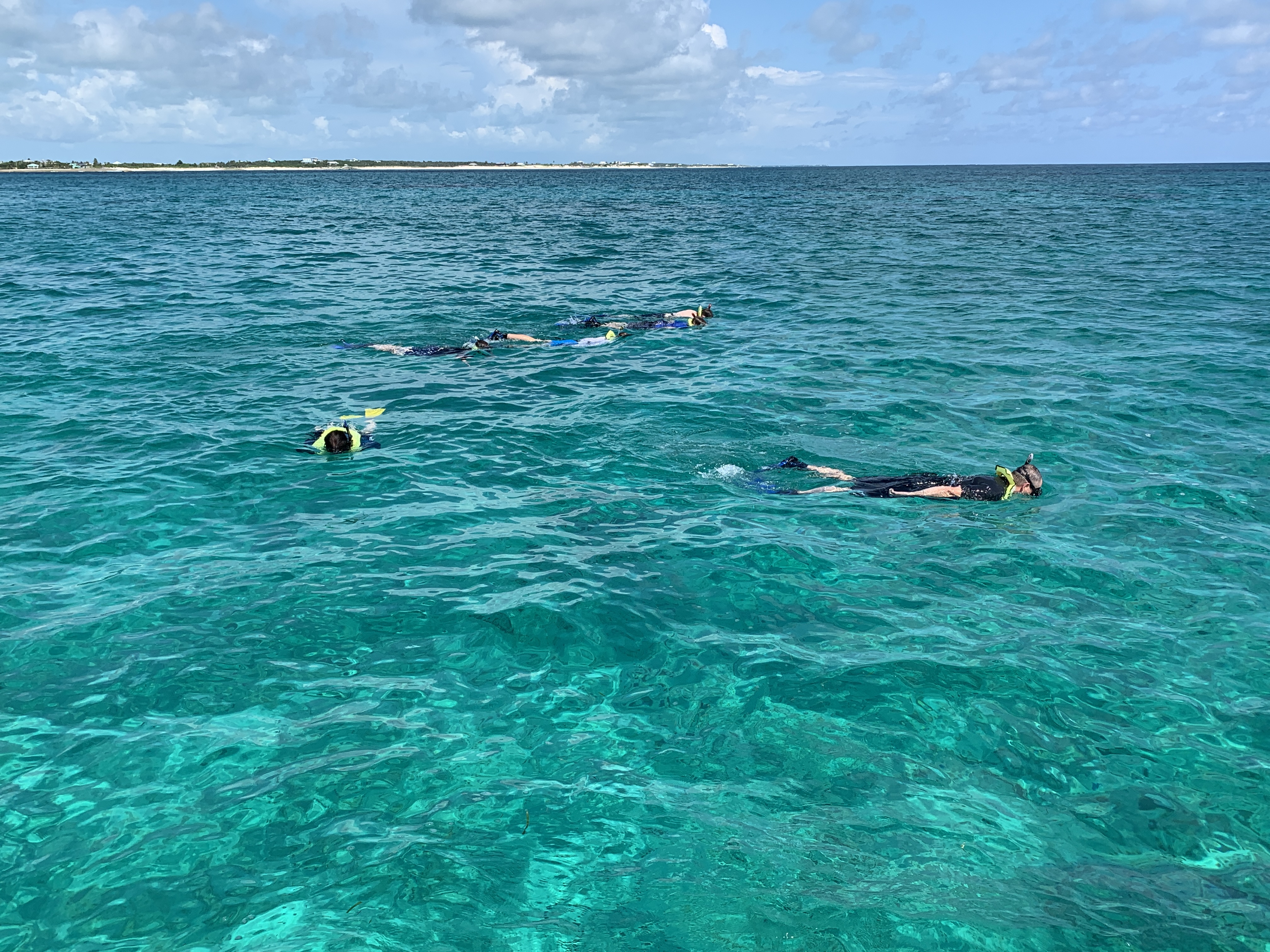 We discuss best practices for snorkeling and a little bit of reef ecology, then the crew jumps in.