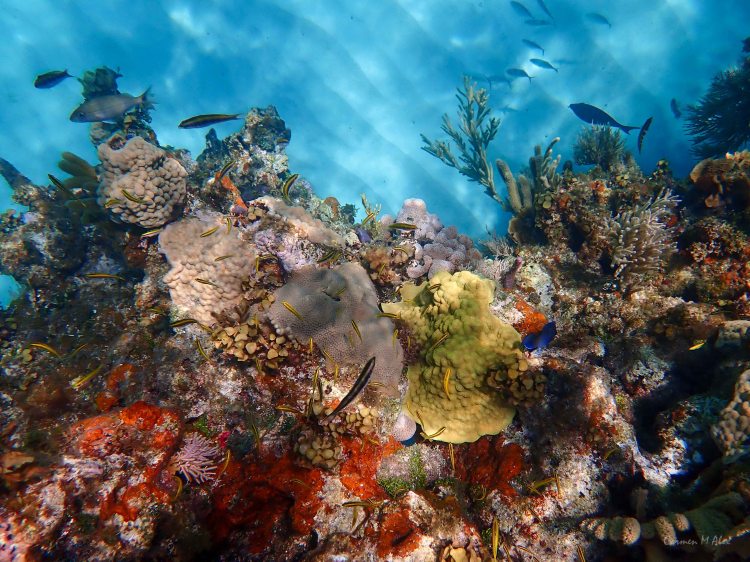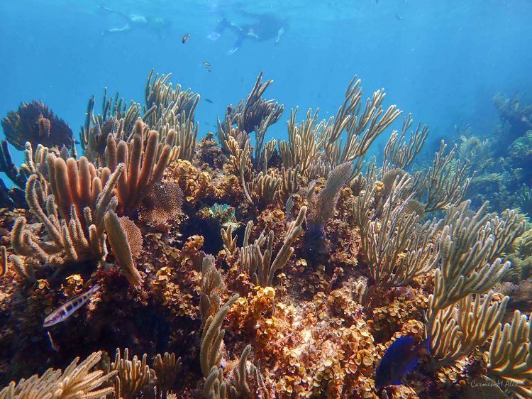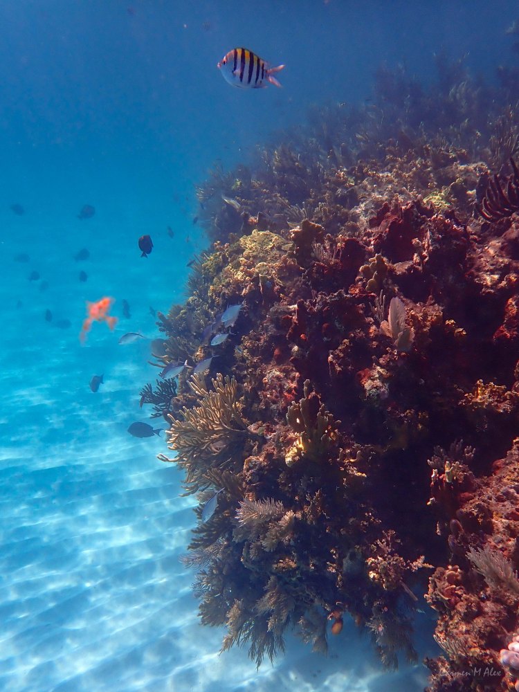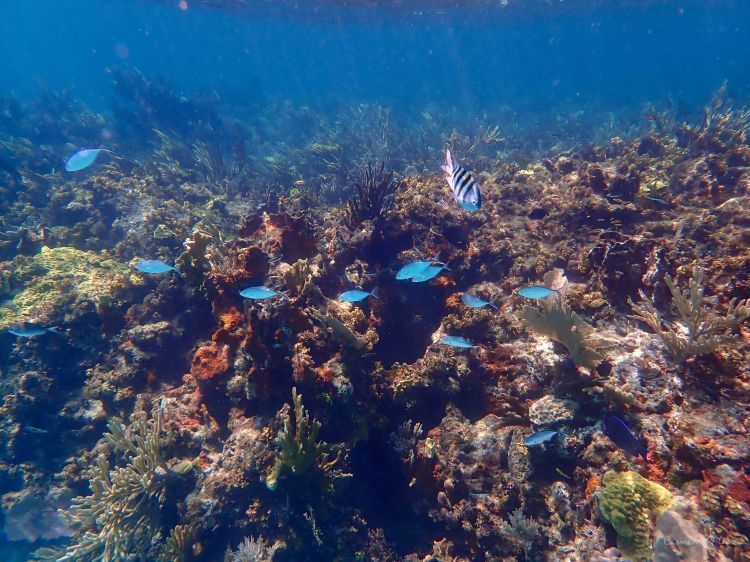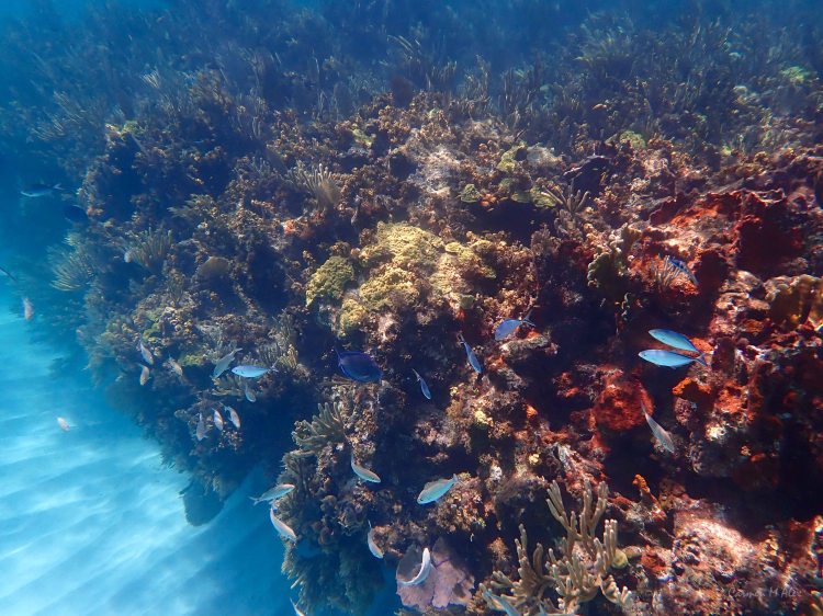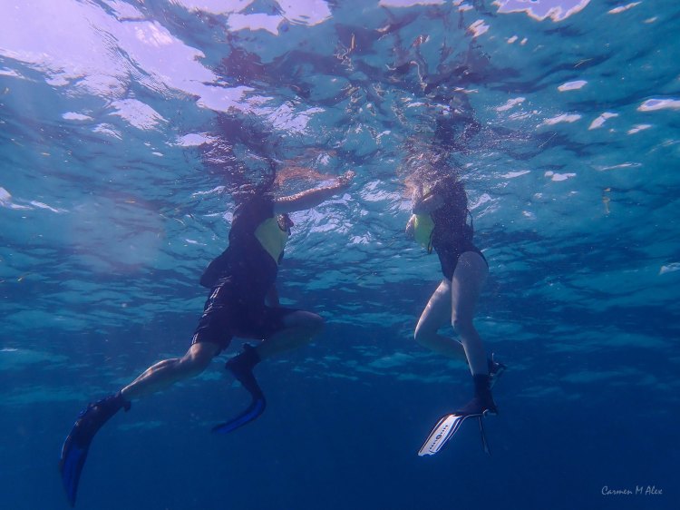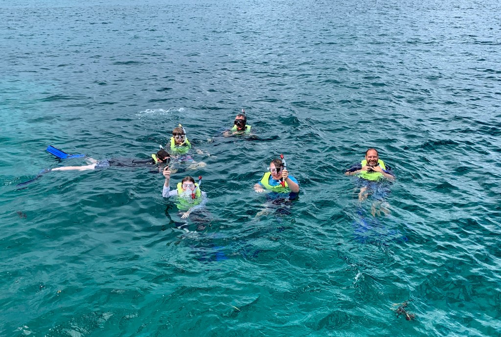 We discuss best practices for snorkeling and a little bit of reef ecology, then the crew jumps in.