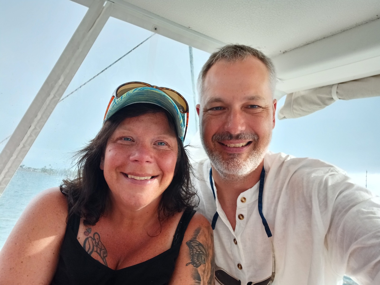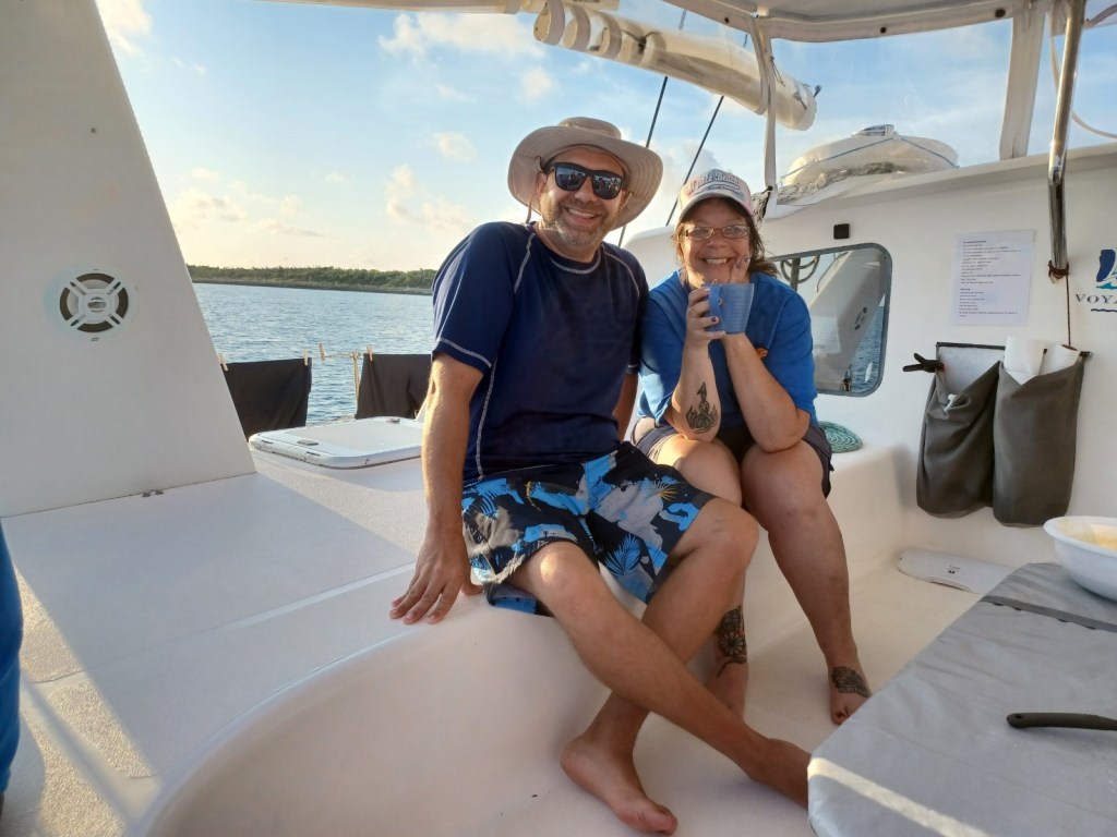 After breakfast, we head to Fowl Cay Reef. The anchor crew is ready and we have Sam at the helm to take us there.