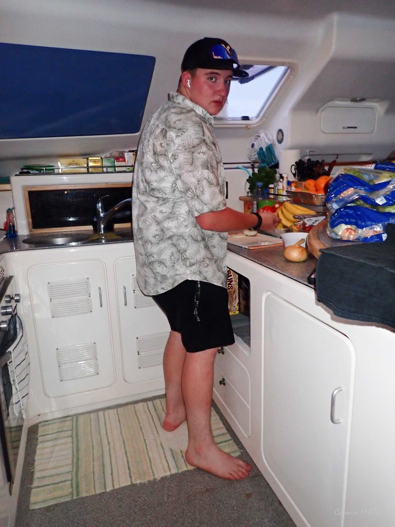 Since there’s not much else to do, we start with lunch. Maxx makes Mac & Cheese in the galley and Sara reworks the grilled chicken into a delicious chicken salad.
