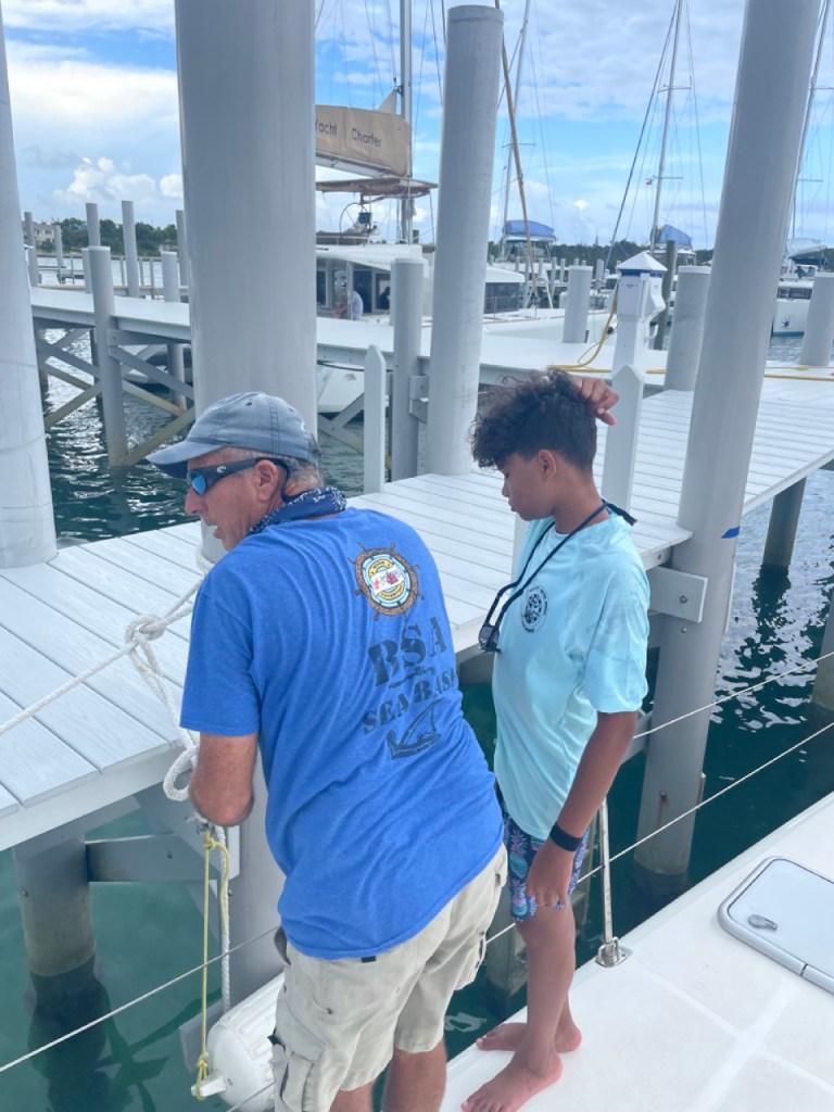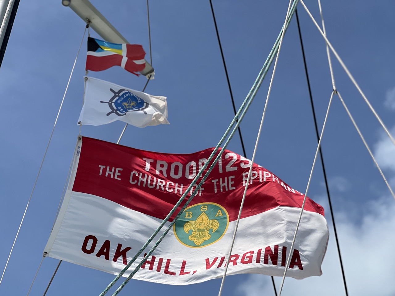 Captain Steve taught the troop sailing basics and the boys hoisted the main sail and unfurled the jib.